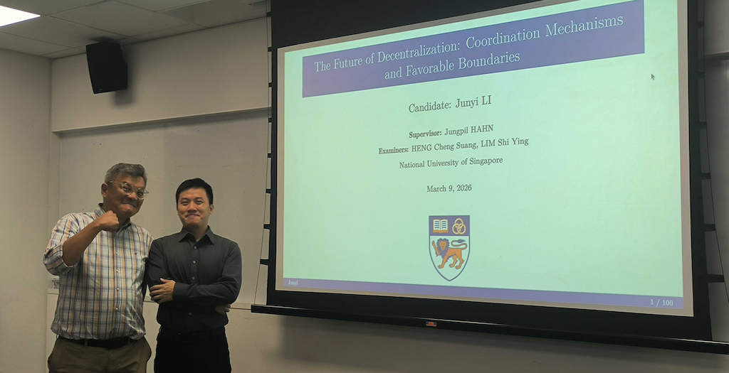 Today, Li Junyi successfully defended his dissertation entitled “The Future of Decentralization: Coordination Mechanisms and Favorable Boundaries”.